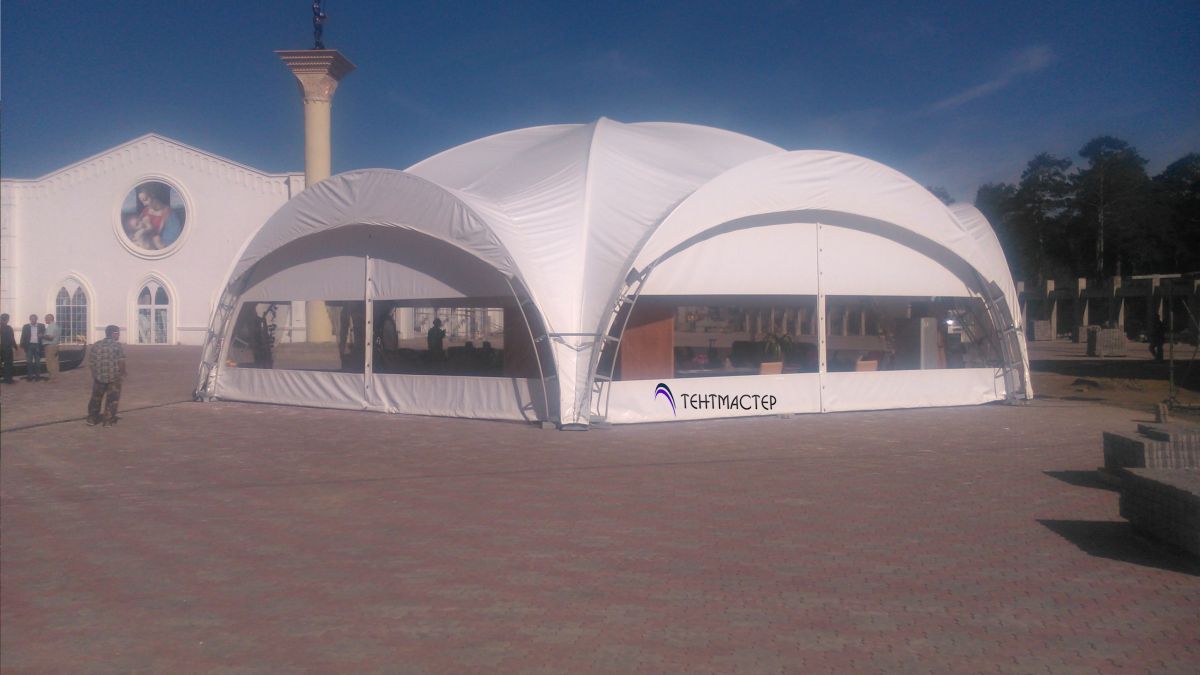 Шатер арочного типа для летнего кафе, свадьбы и т.д. Большой размер, красивая форма, оптимальная цена. Шатер имеет металлический каркас из профильной трубы и тент из материала ПВХ морозостойкого, что позволяет использовать его зимой.