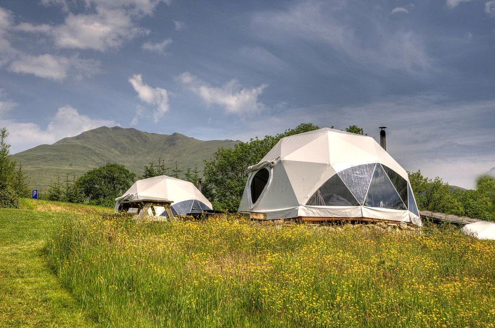 Шатер геокупольной формы по оптимальной цене. Шатер имеет металлический каркас из профильной трубы и тент из материала ПВХ морозостойкого, что позволяет использовать его зимой. Форма шатра позволяет выдерживать высокую снеговую и ветровую нагрузку. Геокупольные шатры могут дополнительно комплектоваться дверьми, вентиляционными дефлекторами, прозрачными окнами. Каркас конструкции собирается из труб 2-4 различных размеров на болтовых соединениях. Тент геокупола цельный, надевается бригадой из 2-3 человек, равномерно натягивая его по поверхности каркаса.
