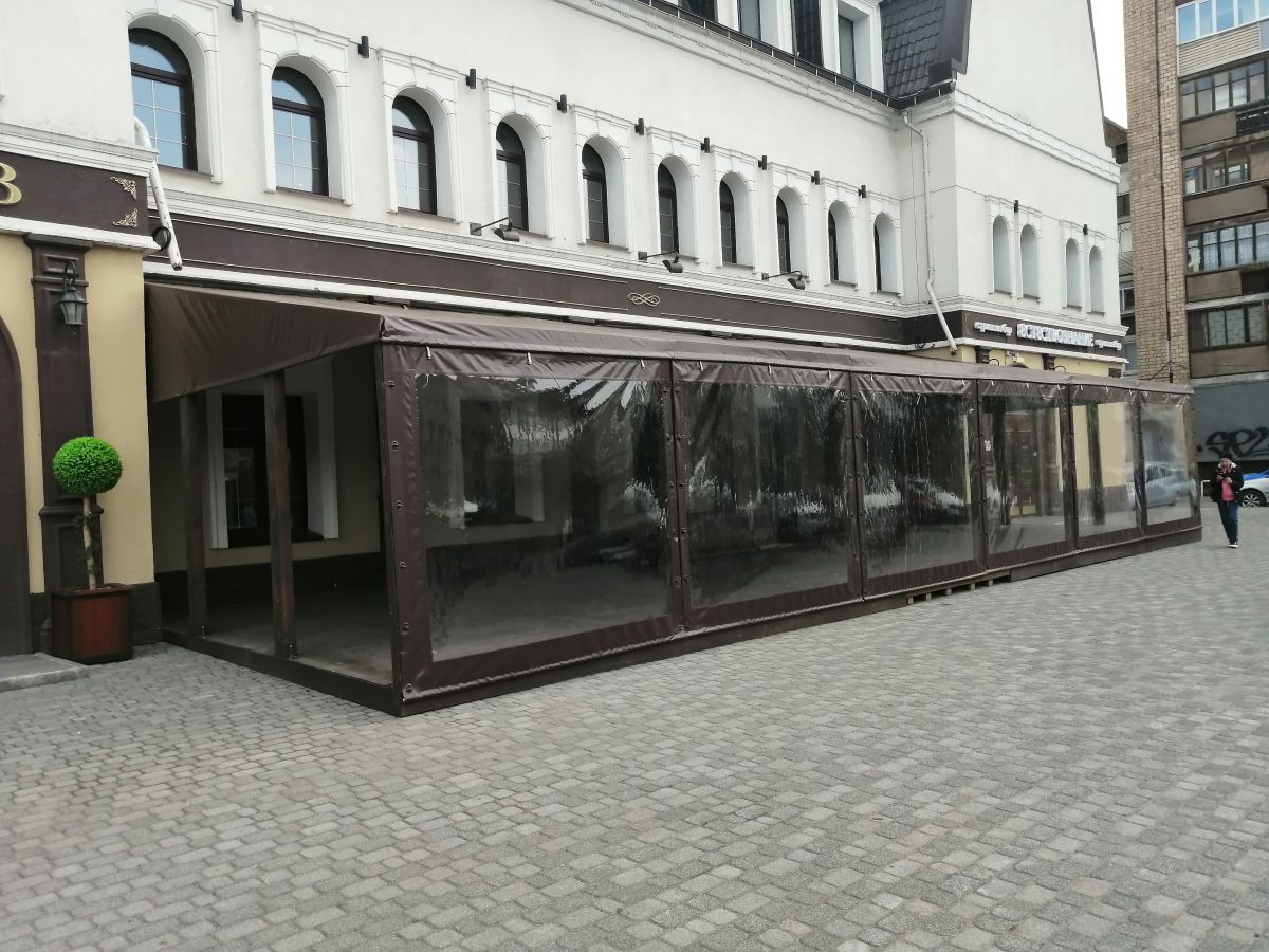 Читать все статьиКаркасно-тентовый навес и шторы на Biergarten