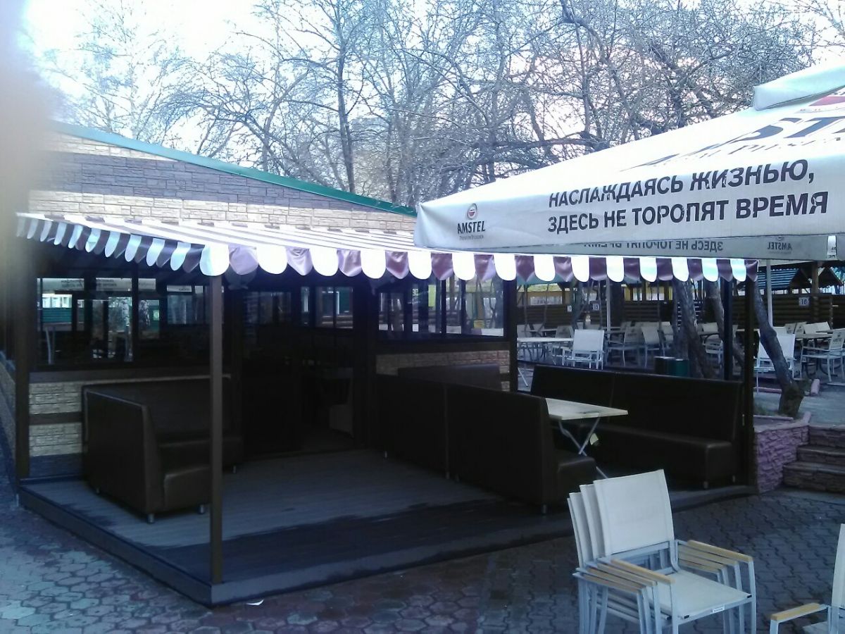Читать все статьиКаркасно-тентовый навес на кафе Заповедное