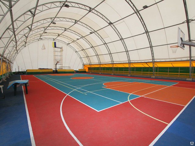 Для баскетбола и волейбола, где используются мячи большого размера, может потребоваться установка специальных защитных экранов или сетчатых ограждений вдоль стен и потолка ангара, чтобы предотвратить попадание мяча на ткань.