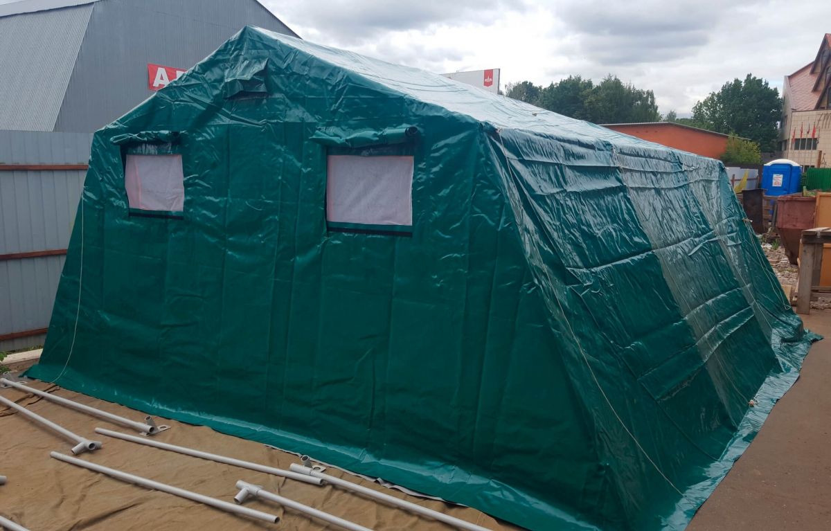 Палатка ЧС-43 имеет четырехскатную крышу, вертикальные стенки, два входа с тамбурами, четыре окна на боковых стенках, одно дымоходное отверстие. Каркас состоит из деревянных стоек, которые устанавливаются в наружный намет и растягиваются веревочными оттяжками. Внешний намёт палатки выполнен из парусины льняной и полульняной со светопрочной комбинированной повышенной водоупорности пропиткой СКПВ. На торцевой стенке наружного намета расположен вход, который закрывается внахлест и застегивается на клеванты.На боковых стенках расположены окна, которые оборудованы москитной сеткой, оконной пленкой и откидными светозащитными шторами. Внутренний намёт выполнен из отбеленной бязи, плотностью 150 гр/м2, и копирует наружный всеми отверстиями и формами, плотно прилегает к каркасу палатки и пристегивается к нему специальными креплениями. Утеплитель изготовлен из фланели, и копирует наружный всеми отверстиями и формами, плотно прилегает к каркасу палатки и пристегивается к нему специальными креплениями. В крыше палатки имеются вентиляционное отверстие, которое также используются под выпуск дымохода отопительного прибора (печи), оборудованноеметаллическим листом с отверстием под печную трубу и защитной шторкой на вздержке Пол (доп. Опция) палатки изготовлен из ткани Тарпаулин Окна палатки оснащены противомоскитными сетками, оконной пленкой и откидными светозащитными шторами.