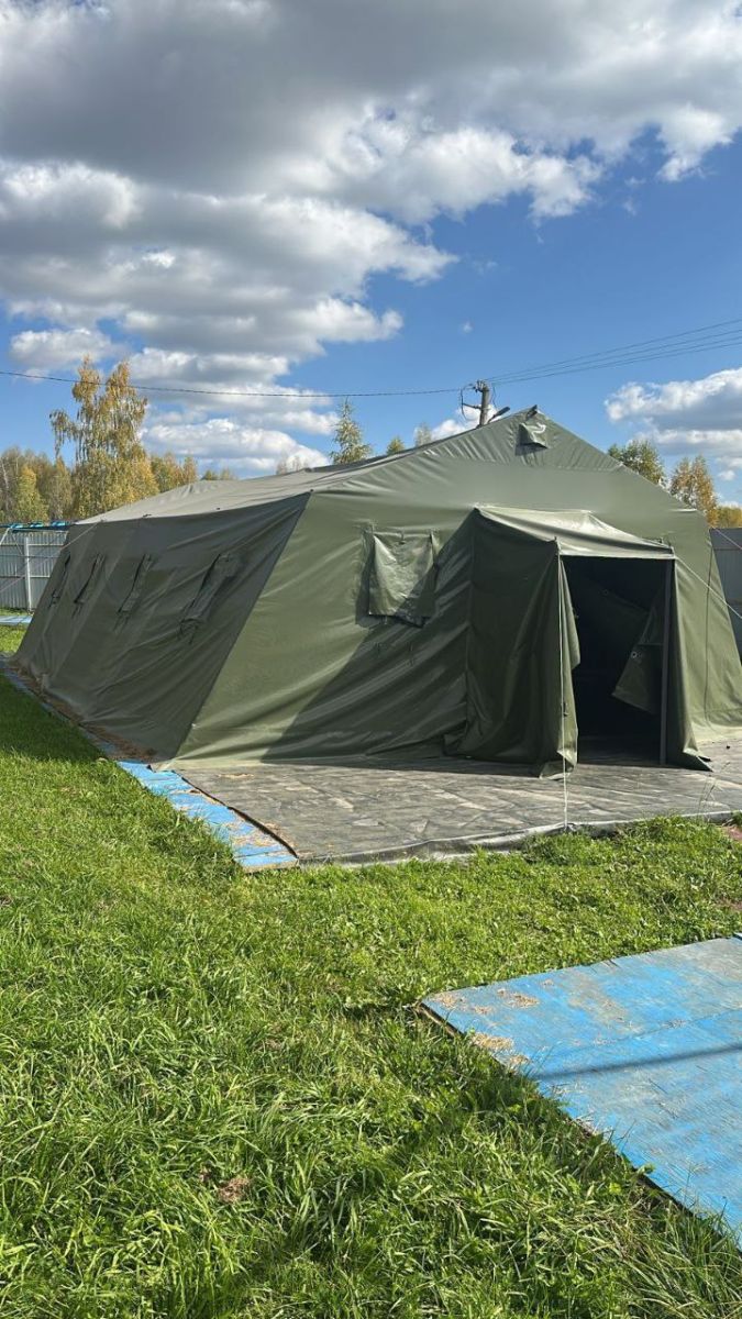 Палатка М-36 Армейская палатка на 36 человек, всесезонная Стоит на вооружении в РФ в настоящее время. Палатка имеет особо прочный жесткий каркас из стальных профильных звеньев, который выдерживает снеговую нагрузку до 140 кг/м². Ветроустойчивость достигает 48 кг/м². Палатка состоит из комбинированного внешнего тента с полностью влагонепроницаемой крышей из двухслойной ПВХ-ткани. Стенки внешнего тента выполнены из натуральной парусины для обеспечения естественной вентиляции. В крыше имеются два забранных стальными листами дымоходных люка, в стенках – рукава для подключения тепловых пушек и проводки. Внутренний тент моющийся. Окна снабжены противомоскитными сетками и съемным заполнением из оргстекла. Входы имеют тамбуры. Отопленная палатка с установленными стенками отепления выдерживает мороз до -50⁰C. Вместимость палатки: 36 человек на двухъярусных кроватях.