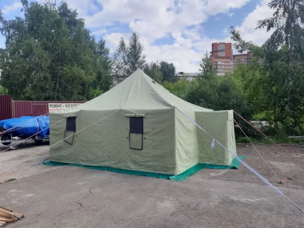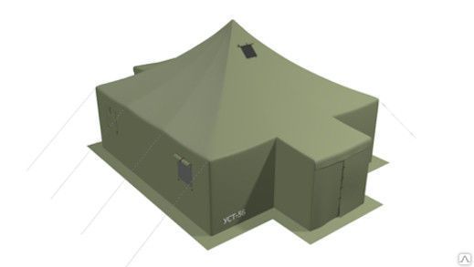 Палатка УСТ-56 имеет четырехскатную крышу, вертикальные стенки, два входа с тамбурами, четыре окна на боковых стенках, одно дымоходное отверстие, защищенное клапаном и металлическим листом. Каркас состоит из металлических стоек, которые устанавливаются в люверсы на тенте и натягиваются веревками и кольями. Внешний намёт палатки брезента СКПВ (повышенная водоупорность). Внутренний намёт изготовлен из отбеленной бязи, плотностью 150 гр/м2, и копирует наружный всеми отверстиями и формами, плотно прилегает к каркасу палатки и пристегивается к нему специальными креплениями. Стенки отепления изготовлены из фланели, и копирует наружный всеми отверстиями и формами, плотно прилегает к каркасу палатки и пристегивается к нему петлями. Пол (доп. Опция) палатки изготовлен из ткани Тарпаулин или ПВХ по выбору заказчика. Палатка УСТ-56 хорошо зарекомендовала себя как палатка для временного размещения 20 человек, при быстрой сборке палатке и низкой цене.