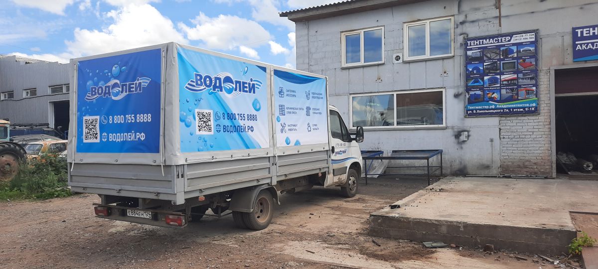 Реклама на автотенте. Нанесение изображения на тентовый материал. Любой тент представляет собой не только защиту от ветра, осадков и пыли, но также является и замечательным рекламным носителем. И мы всегда предлагаем использовать эту возможность. Будь это шатер летнего кафе или тент на грузовой Газели, разместить на нем свой логотип, надпись или рекламное изображение – выгодное решение. Тент с рекламой – не только более красив, но и экономит ваш рекламный бюджет. За такую рекламу нужно заплатить всего один раз. Кроме того, реклама на грузовых автомобилях позволяет вам обозначить эффект присутствия на той территории, на которой вы работаете. Если ваш автомобиль все время на ходу, только представьте, сколько людей случайно наткнется на вашу рекламу взглядом, и многие из этих людей могут стать вашими клиентами! Возможен вариант сотрудничества с рекламными агенствами по поводу изготовления нами тентов для ваших клиентов с нанесением вашей рекламы, а также с организациями, готовыми оплатить изготовление и монтаж тента с рекламой для того, чтобы один из наших клиентов мог получить такой тент бесплатно и радовать рекламой вашей организации взгляды проезжающих в пробке мимо него автомобилистов Красноярска. Компания «ТентМастер» производит шатры, палатки, тентовые ангары различного назначения из металлической трубы и материала ПВХ, тенты для всех моделей грузовых автомобилей и прицепов отечественного и зарубежного производства, завесы, полога, шторы, навесы, бассейны и прочие изделия из ткани ПВХ, брезента, тарпаулина, ткани Oxford. Также компания занимается изготовлением металлоконструкций, ворот на грузовые автомобили, изделий для наружной рекламы, торгового оборудования и выполняет кровельные работы. Выгоды и преимущества компании Опыт работы более 20 лет Сочетание цены и качества Соблюдение сроков изготовления Реализация сложных изделий и задач Наличный и безналичный расчет Как оформить заказ от компании ТентМастер